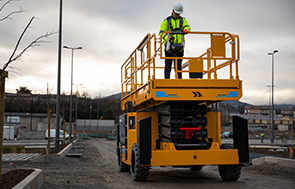 The HS18 E MAX scissor lift can climb slopes up to 45% and have a high ground clearance. It can move over highly uneven terrain and adapt to any situation.