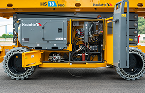 Loading and unloading a platform is a tricky process, especially in conditions with limited visibility. The HS18 E MAX is equipped with the Haulotte Activ’Lighting System. LED spotlights light up the controls and the operating area around the machine so that the operators can perform their maneuvers in total safety.