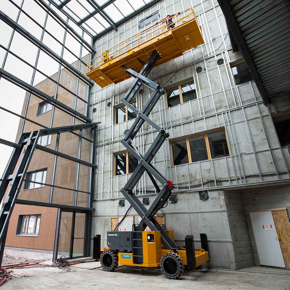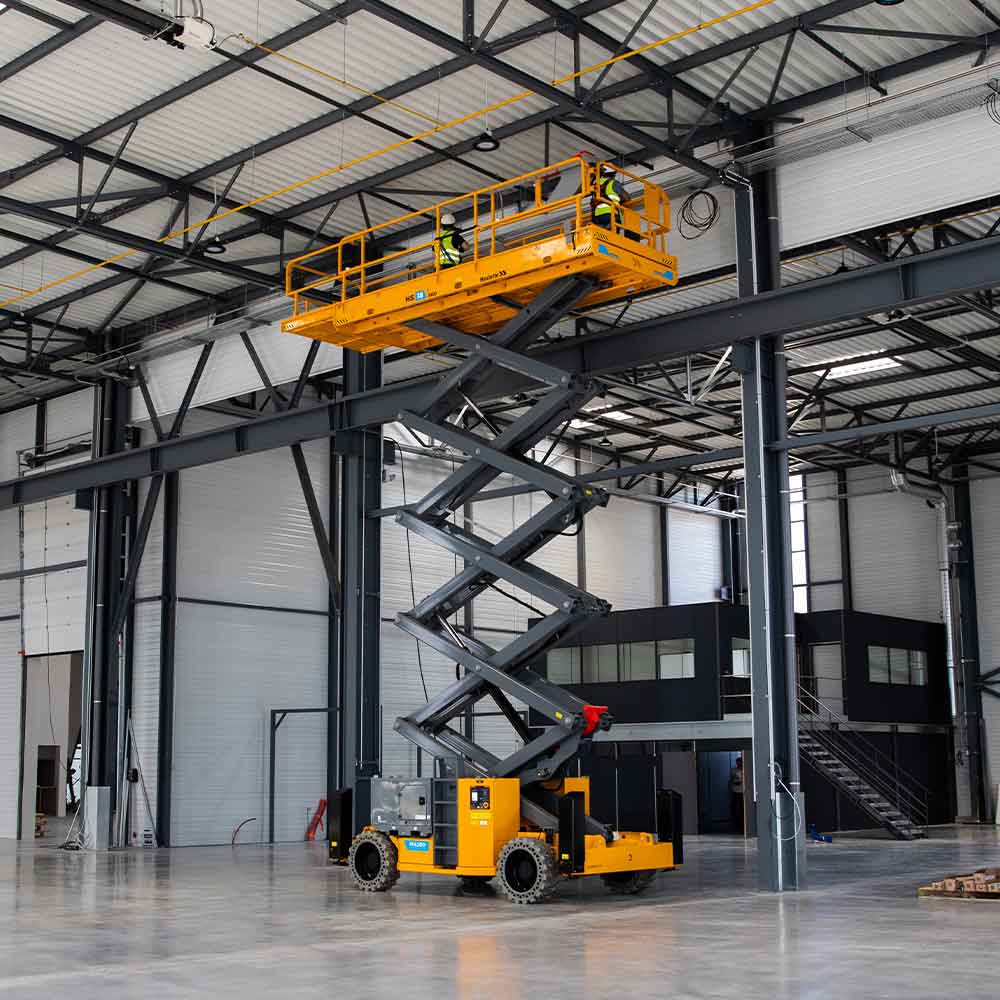 The HS18 E MAX scissor lift offers a clean alternative that works in any situation such as low emission zones, green building projects, and areas where access is prohibited for internal combustion engines. The scissors lifts 100% electric design also make it suitable for indoor use.