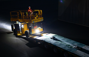 Loading and unloading a platform is a tricky process, especially in conditions with limited visibility. The HS18 E MAX is equipped with the Haulotte Activ’Lighting System. LED spotlights light up the controls and the operating area around the machine so that the operators can perform their maneuvers in total safety.