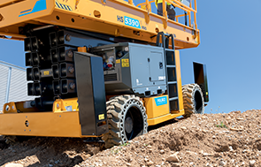 The HS18 E MAX scissor lift can climb slopes up to 45% and have a high ground clearance. It can move over highly uneven terrain and adapt to any situation.